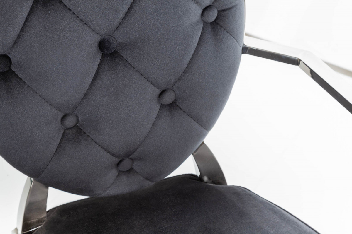 Chaise élégante MODERN BAROCK en velours noir avec accoudoirs et boutons décoratifs - MODERN