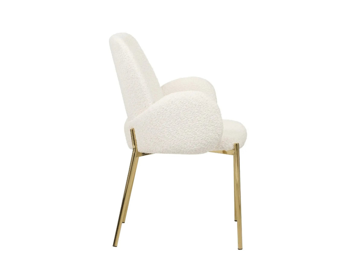 Grand dossier et accoudoirs pour un soutien et une détente optimaux durant les repas.Assise ergonomique conçue pour des heures de confort.Choix entre tissu côtelé beige ou tissu boucle crème pour s'harmoniser avec votre décoration.Pieds noirs ou couleur or pour une touche de modernité ou de luxe.