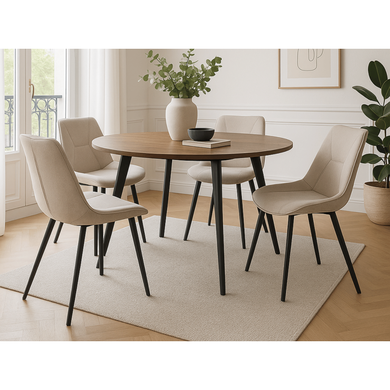 Chaises design - Lot de 4 - Élodie - Tissu beige