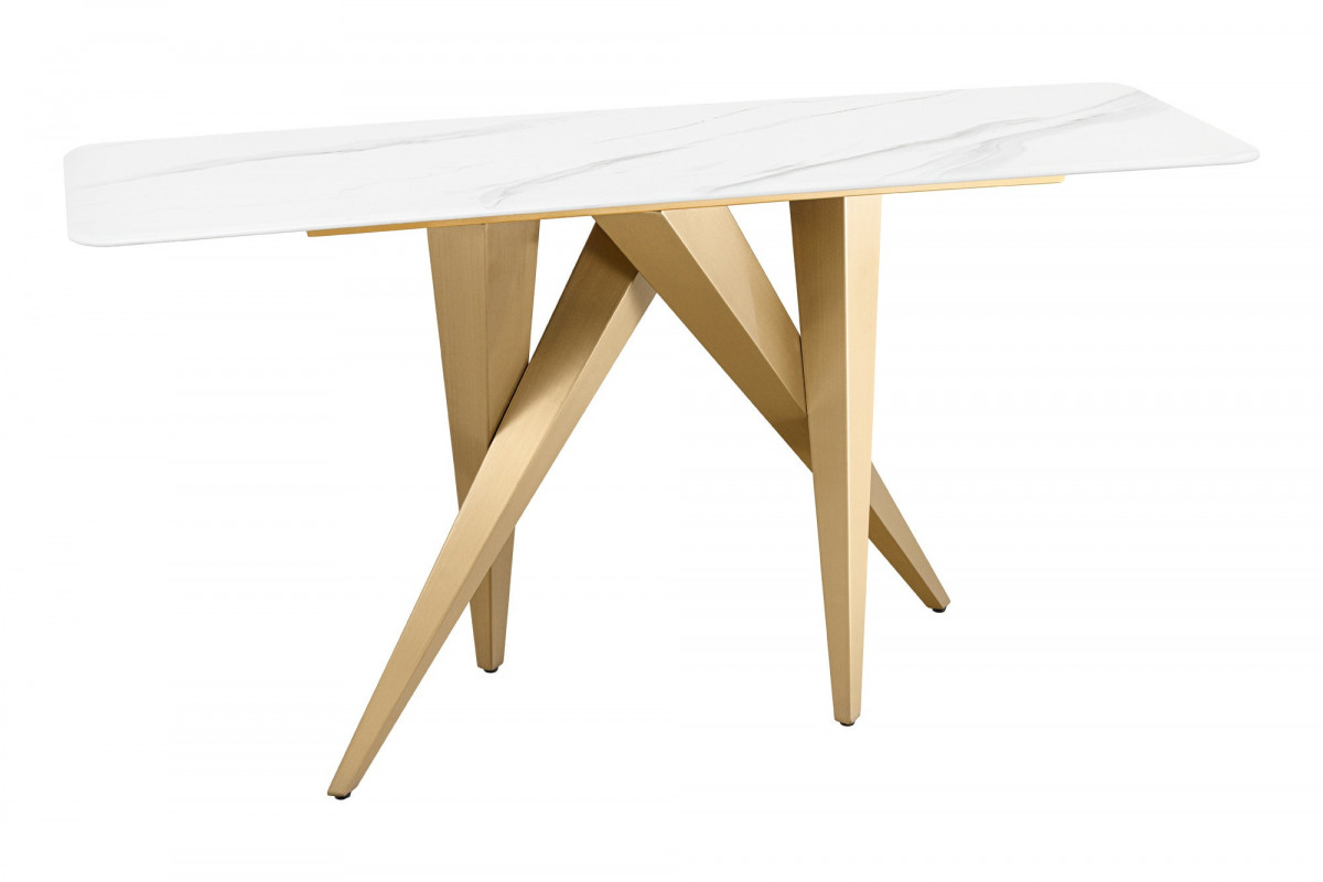 Console design ART LIVING 140cm marbre blanc céramique champagne or brossé - 140