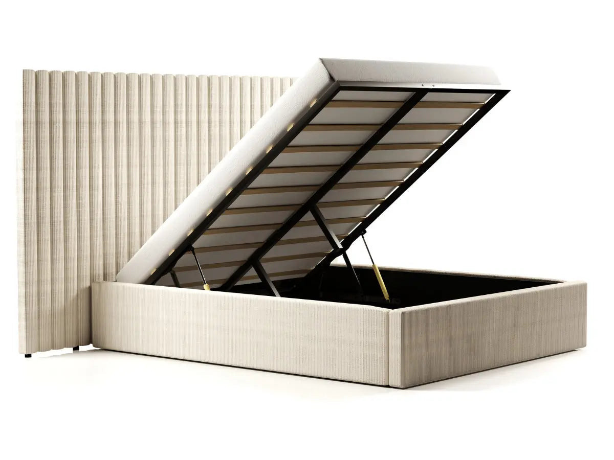 Lit coffre grande tête de lit XXL - EMILIE - 180x200 cm / Tissu velours côtelé beige